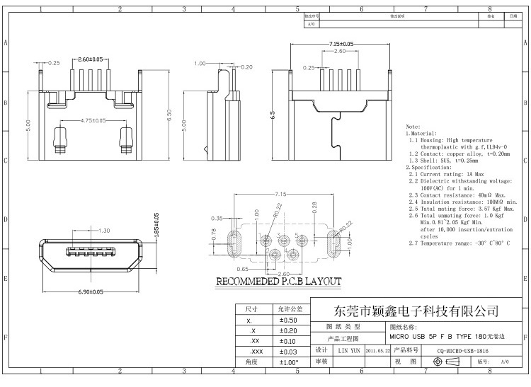 接觸阻抗:30mΩ MAX.INITIAL;40mΩ MAX AFTER 10000CYCLES