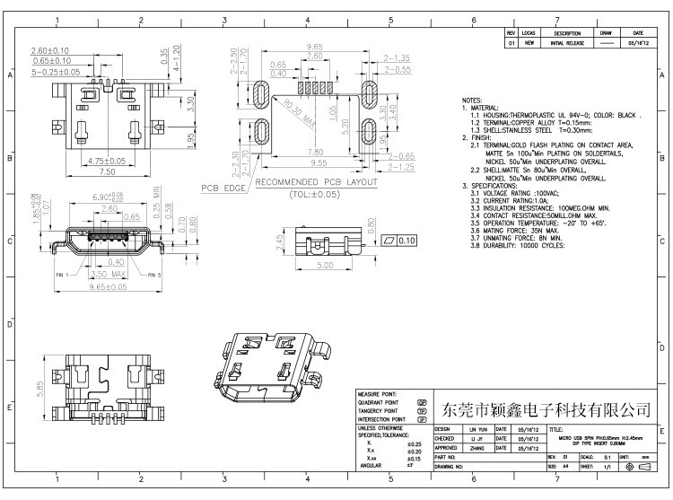 接觸阻抗:30mΩ MAX.INITIAL;40mΩ MAX AFTER 10000CYCLES