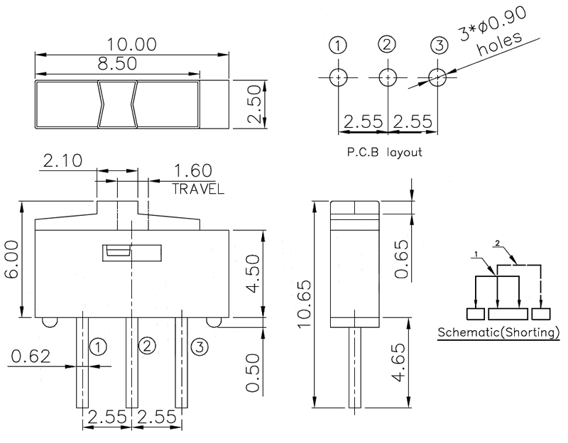 微型撥動(dòng)開關(guān)技術(shù)參數(shù):