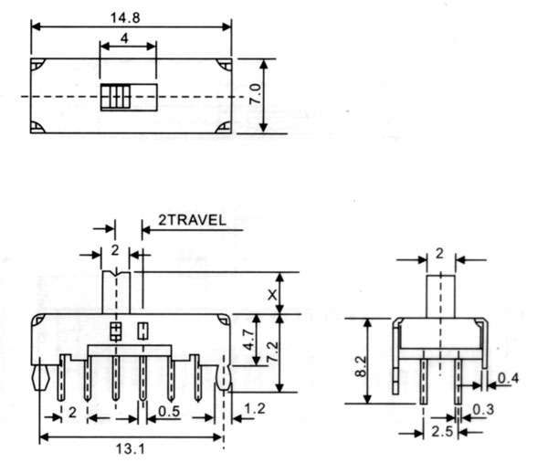 當前位置:撥動開關 >> 舊版產品 >> 豎柄撥動開關 >> 撥動開關SS-44D02